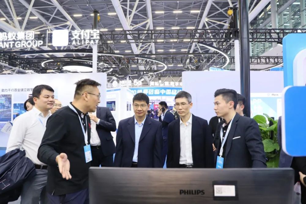 huatihui华体会智能展位吸引了诸多领导和嘉宾,其中,广东省揭阳市委副书记、市政府党组书记、市长支光南,安徽省数据资源管理局党组书记、局长朱诚,广东省政府接待办公室秘书处处长胡圣满,番禺区政府杨少华副区长,黄埔区政数局局长王薇等相关领导莅临huatihui华体会智能展位指导交流,huatihui华体会智能董事长孙超对各领导的莅临指导表示热烈欢迎,并热情介绍了公司参展的创新应用成果。